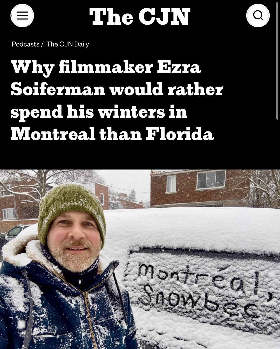 Read Ezra’s personal essay on the 7-year genesis of “Montréal, Snowbec”, published on the CBC’s Creator Network and released alongside the film. Read it here.